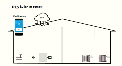 - E-TRV internete bağlanarak, mobil cihazınız üzerinden tüm özellikleri kontrol edilebilir veya E-TRV termostat başlığından sıcaklık değeri manuel ayarlanabilir.